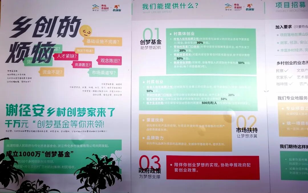 由浦阳镇人民政府与传化慈善基金会、浙江传化乡村发展有限公司共同发起,成立1000万"创梦基金",支持100个乡村创新创业项目,谢径安·传化农创村"三村的村集体、村民增收。