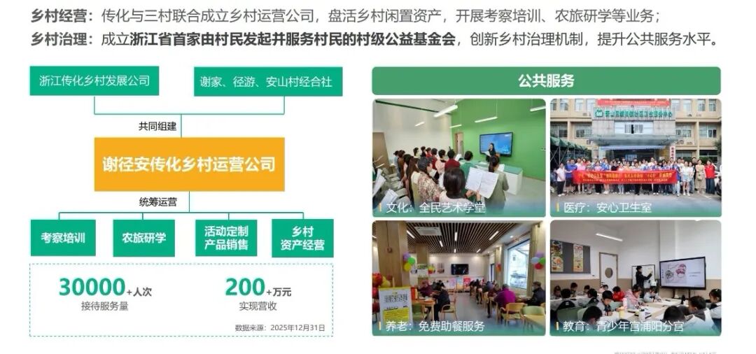 传化与三村联合成立乡村运营公司,盘活乡村闲置资产,开展考察培训、农旅研学等业务。