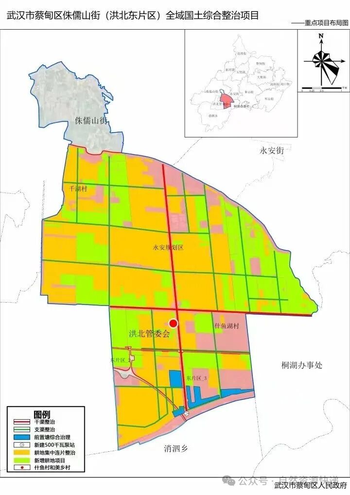 湖北省-蔡甸区侏儒山街(洪北西片区)全域国土综合整治项目实施方案公示稿及重点项目分布图